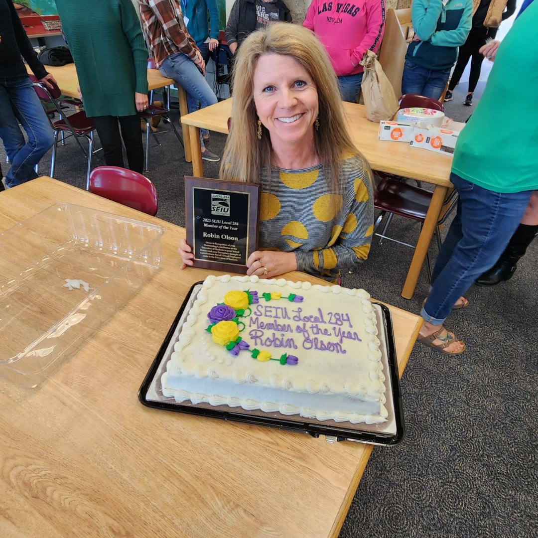 Robin Olson, of Pequot Lakes, was awarded the SEIU Local 284 Member of the Year Award. Robin has shown great dedication and determination to her profession, coworkers, and union. Congratulations Robin!